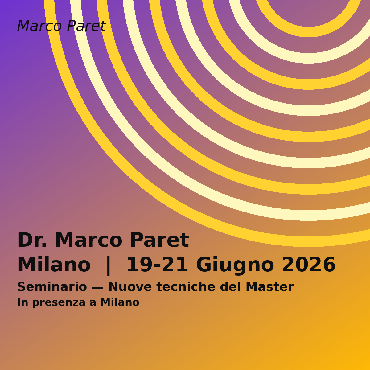 Scopri le nuove tecniche del Master con il Dr. Marco Paret, leader mondiale nell’ipnosi non verbale e nel mesmerismo. Dal 19 al 21 giugno 2026 a Milano, un seminario intensivo di 3 giornate in presenza per approfondire le tecniche più avanzate del Metodo Paret©.